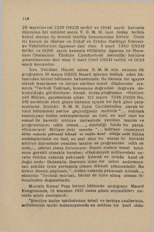 sında “Tevhidi Tedrisat« konusuna doğrudan doğruya do