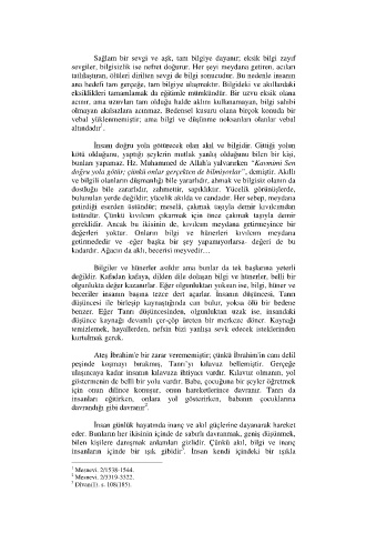tatlılaştıran, ölüleri dirilten sevgi de bilgi sonucudur. Bu nedenle insanın
